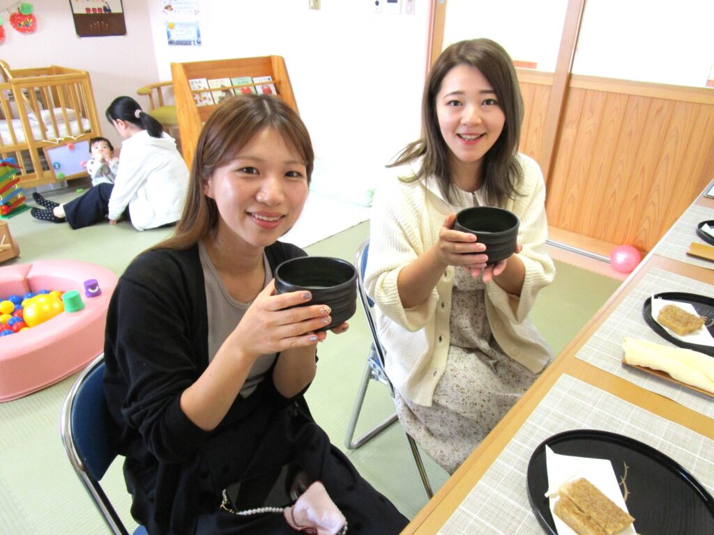 9日にお月見お茶会をしました。立てたお抹茶に手作りおやつを添えて…。なかなかゆっくりできない毎日ですが、ほっと一息することができたようです。手作りおやつはミルク椿餅。園でも人気の手作りおやつです。レシピをみるとアレンジも浮かんだようですよ。お家でも是非作ってみてくださいね。