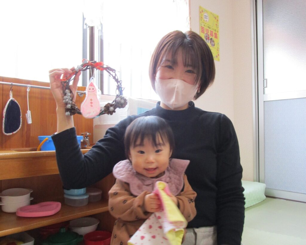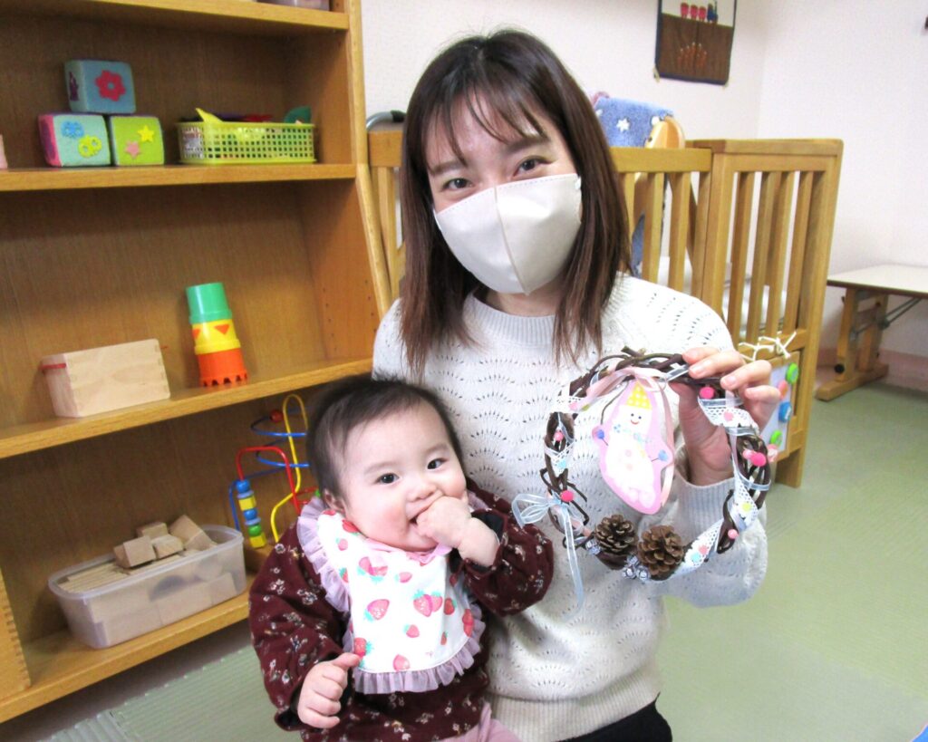クリスマスリース作りをしました。さつま芋のツル(年長さんが育てた)で作ったリースに松ぼっくりや木の実をつけたり、リボンやビーズを飾ったり…。それぞれにイメージしながら作っていましたよ。いつもお仕事で参加できなかったパパさんの参加もあり、パパが素敵なリースを作っていました。みなさん、楽しいクリスマスをお過ごしくださいね。