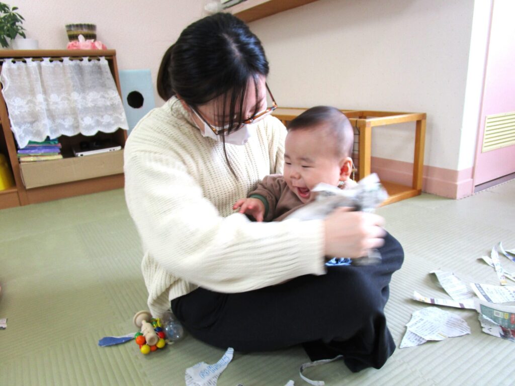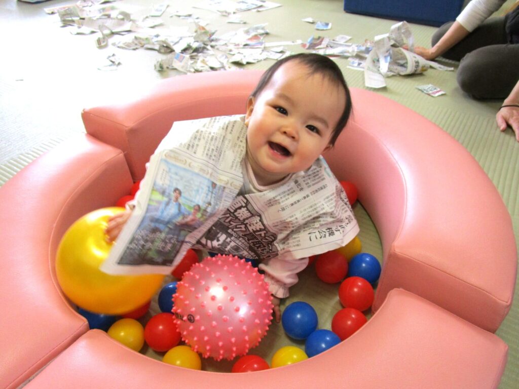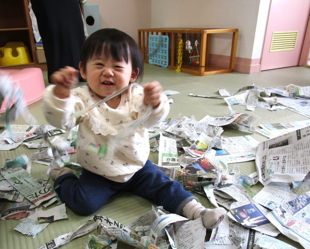 活動の様子:新聞紙遊び