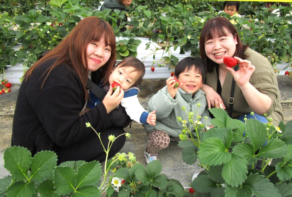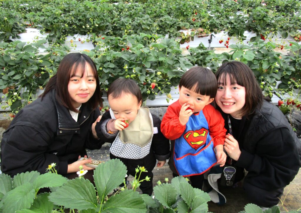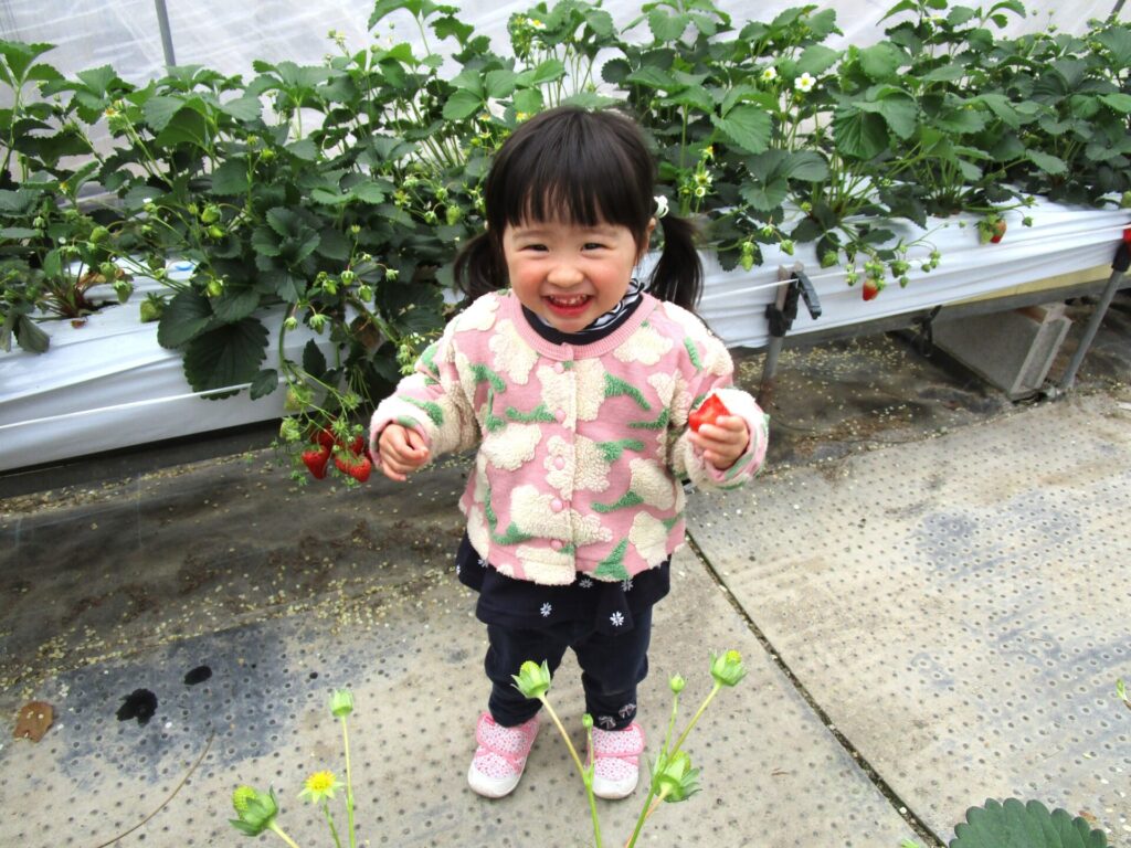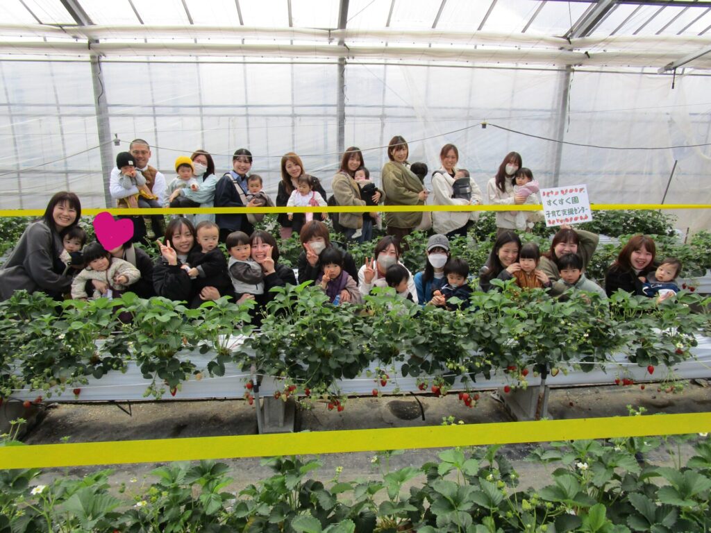 19日に観光園久ちゃんへいちご狩りに行きました。大きくて甘いいちごに自然と笑顔がこぼれていましたよ。家族やお友達と一緒に口いっぱいに頬張って夢中で食べていました。