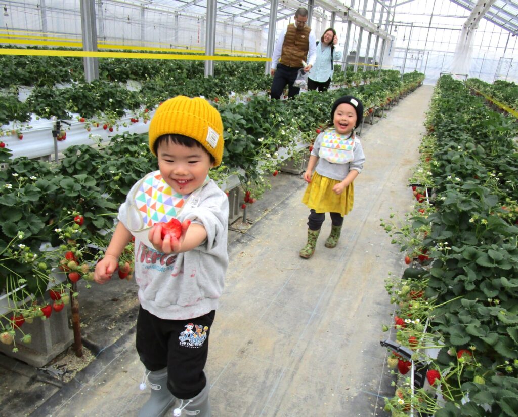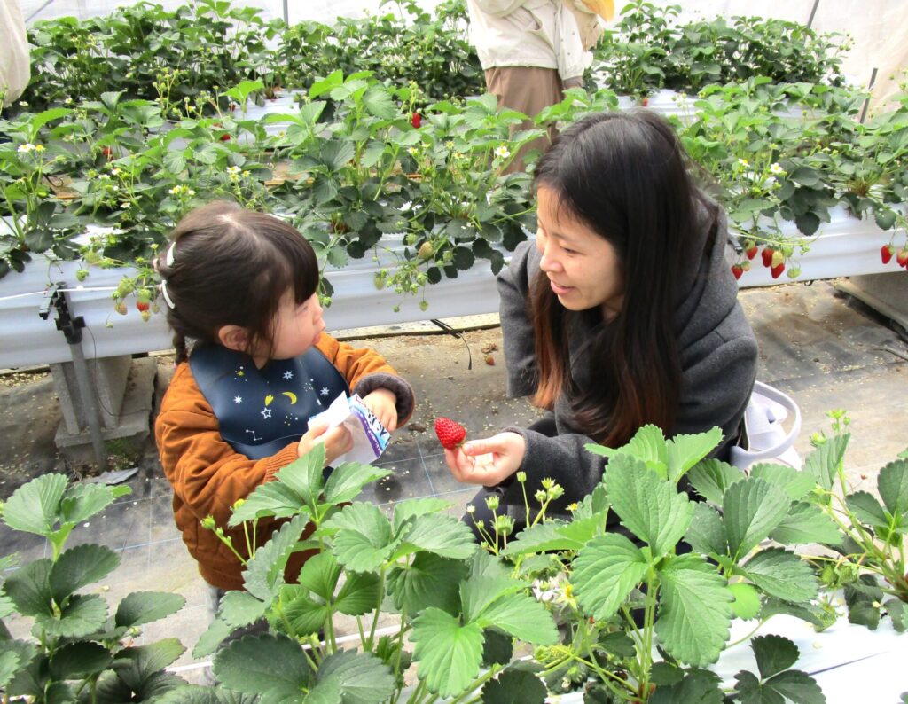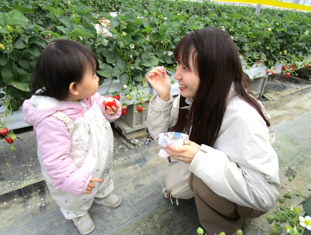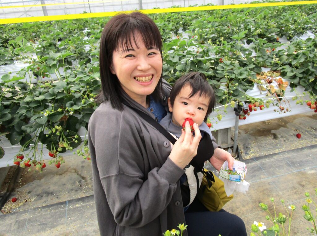 19日に観光園久ちゃんへいちご狩りに行きました。大きくて甘いいちごに自然と笑顔がこぼれていましたよ。家族やお友達と一緒に口いっぱいに頬張って夢中で食べていました。