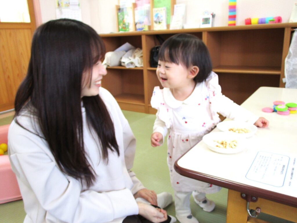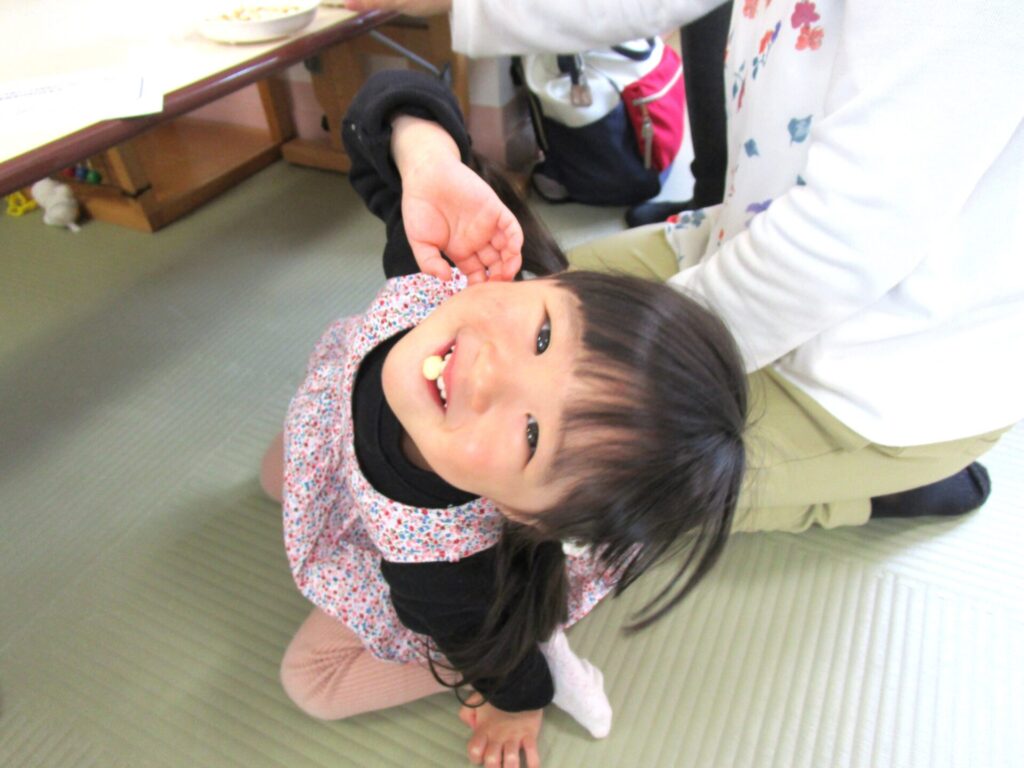 簡単おやつ作りの今回のメニューは、園で人気のまめふのかりんとう!!実際に栄養士に作ってもらうと、遊んでいたお友達も美味しそうな匂いにつられて近づいて来て見ていましたよ。食べてみるとほんのり甘くて、サクサクの食感!!材料も少なくとても簡単にできるのでご家庭でも是非作ってみてくださいね。レシピを知りたい方はすくすく園まで♪